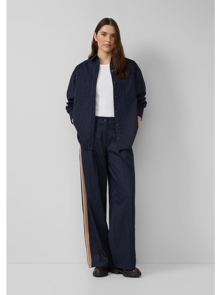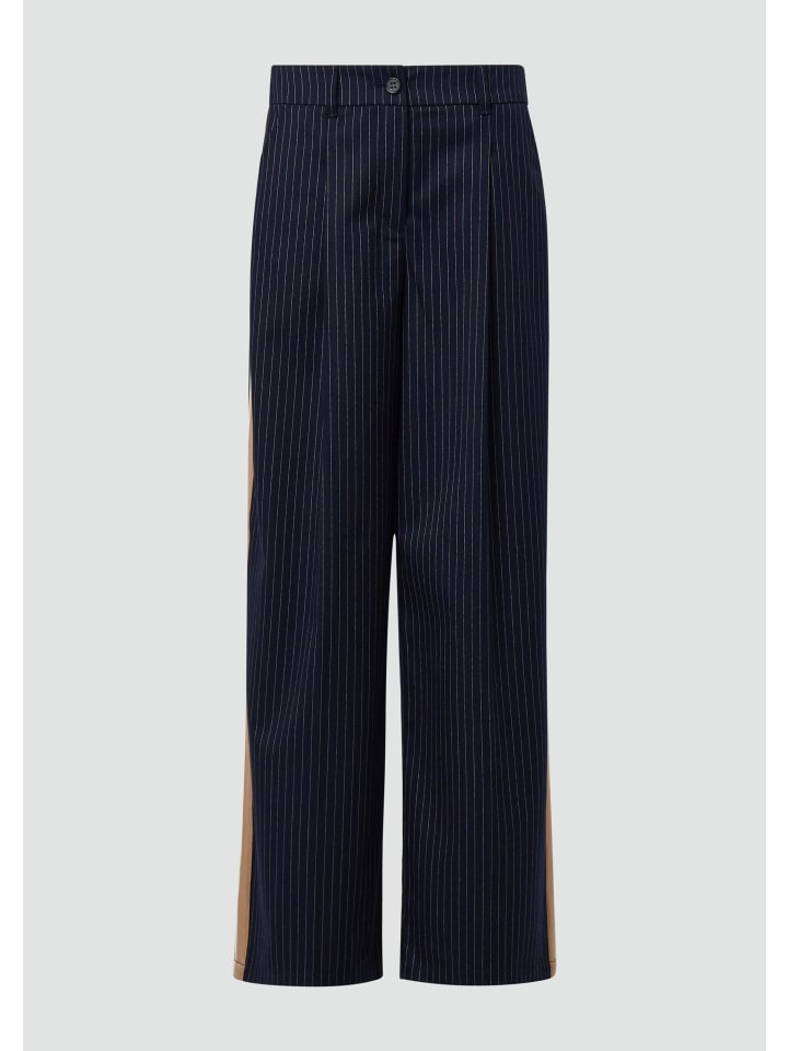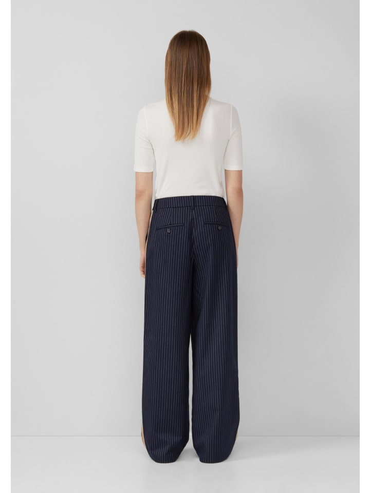 Элегантные брюки с высокой талией, классической полоской и изысканными складками. Классический широкий крой и практичные боковые карманы сделают их вашим стильным спутником как в деловых, так и в торжественных случаях.