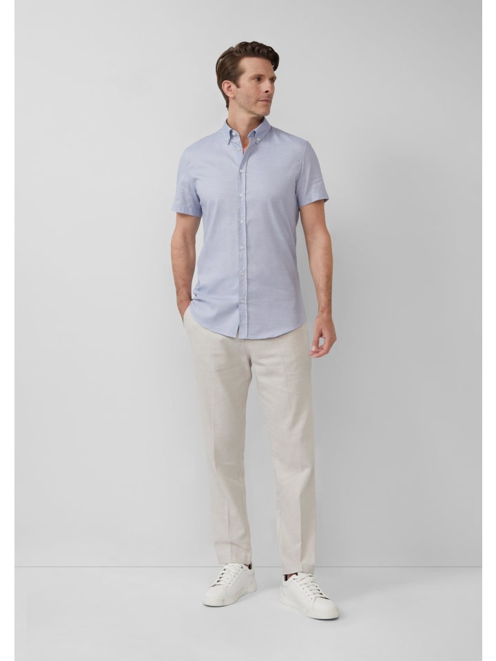 Эта рубашка из хлопка с приталенным кроем воплощает вневременную элегантность, а тонкий узор «елочка» придаст вам изысканный вид для любого случая. Отложной воротник на пуговицах и нагрудный карман подчеркнут ваш стильный внешний вид. Простая в уходе и эластичная ткань - для впечатляющего комфорта. Ваш новый спутник для уверенных моментов между офисом и ужином.