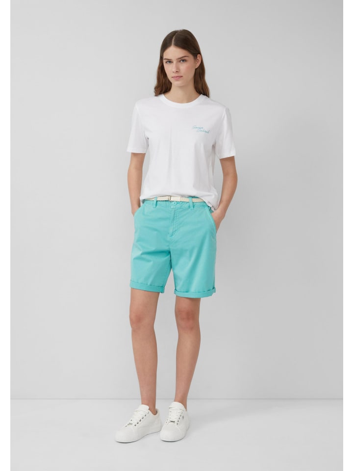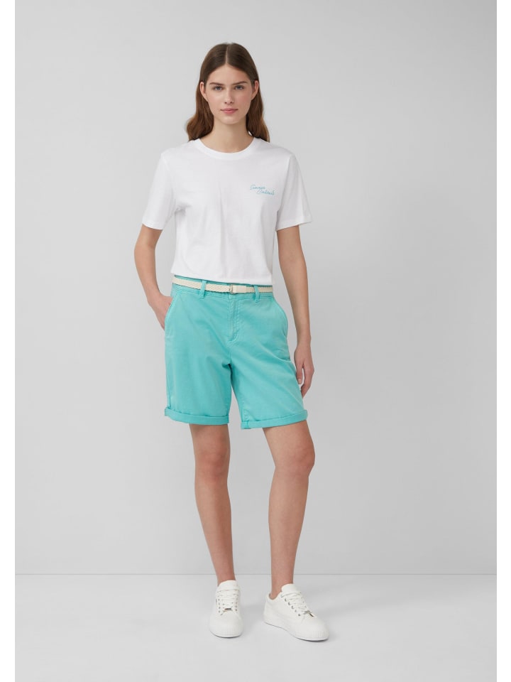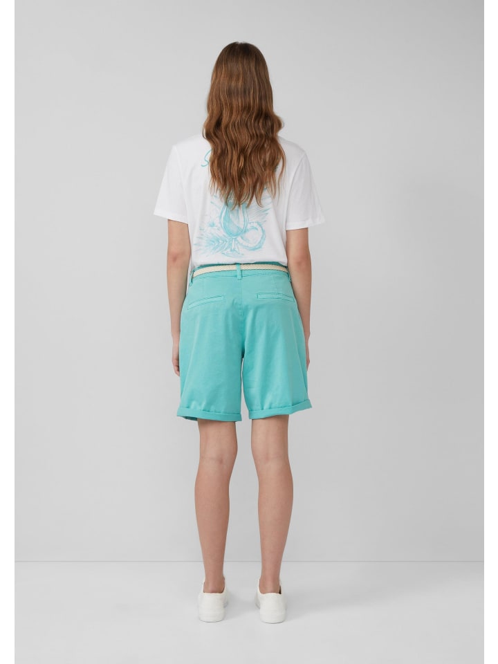 Эти повседневные шорты-бермуды из эластичного хлопка выглядят стильно, словно окрашенные в готовом виде. Плетеный пояс, практичные боковые карманы и классический крой делают их идеальным спутником для летних прогулок.