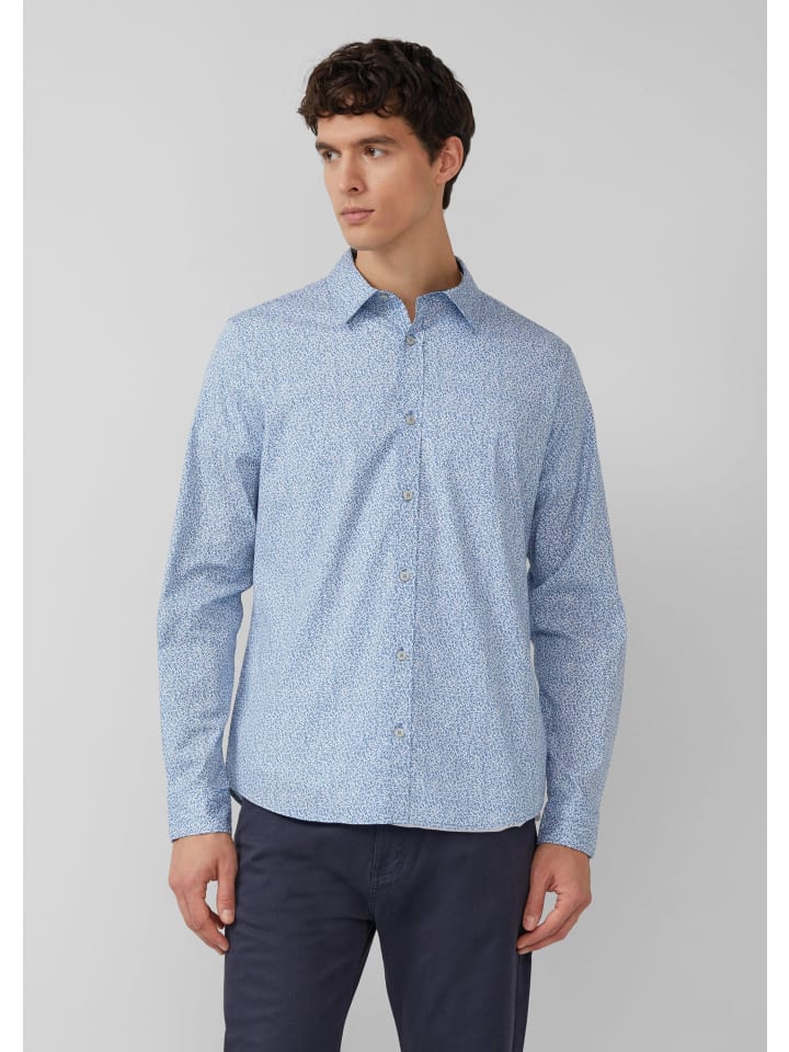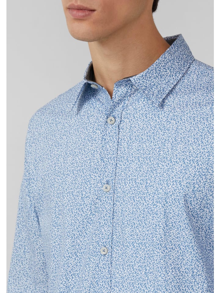 Эта легкая рубашка облегающего кроя из эластичного хлопка с динамичным принтом по всей поверхности обязательно подчеркнет вашу фигуру. Классический воротник Kent, изящные декоративные швы и закругленный подол создадут стильный образ - будь то в офисе или на непринужденной прогулке по городу.