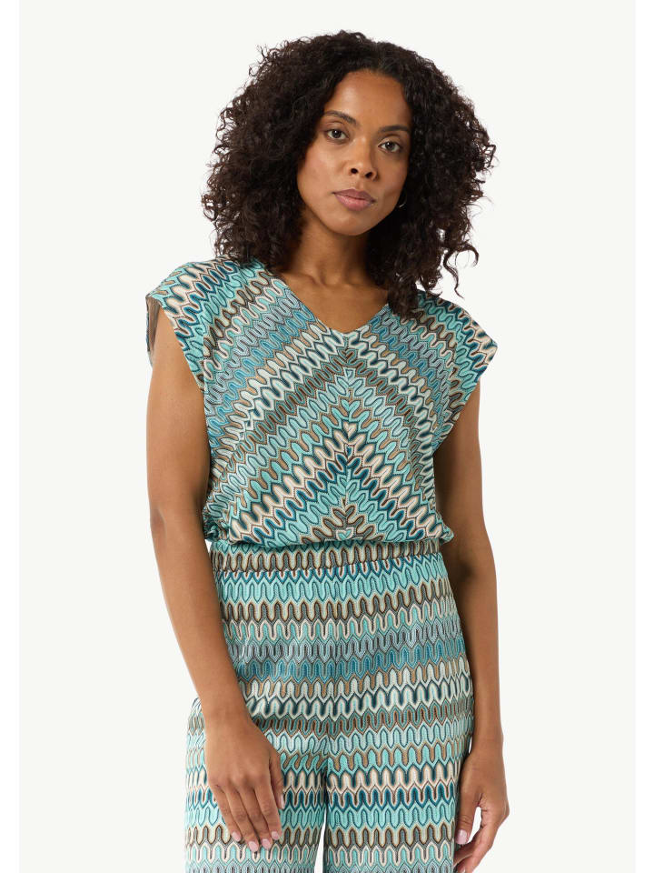 Вневременная женственность: эта трикотажная футболка с узором, V-образным вырезом и спущенными плечами создаст непринужденный и современный образ. Изготовленная из легкого трикотажа, она удобна для любых повседневных случаев. Прямой крой подчеркивает фигуру и легко сочетается с джинсами, юбками или шортами.