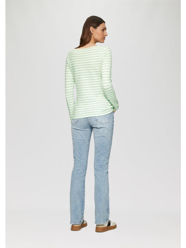 Эта полосатая рубашка из пряжи «slub» с вырезом «лодочка» впечатляет своей приятной мягкостью. Приталенный крой и непринужденный полосатый узор сделают ее идеальным дополнением к расслабленным и повседневным образам.