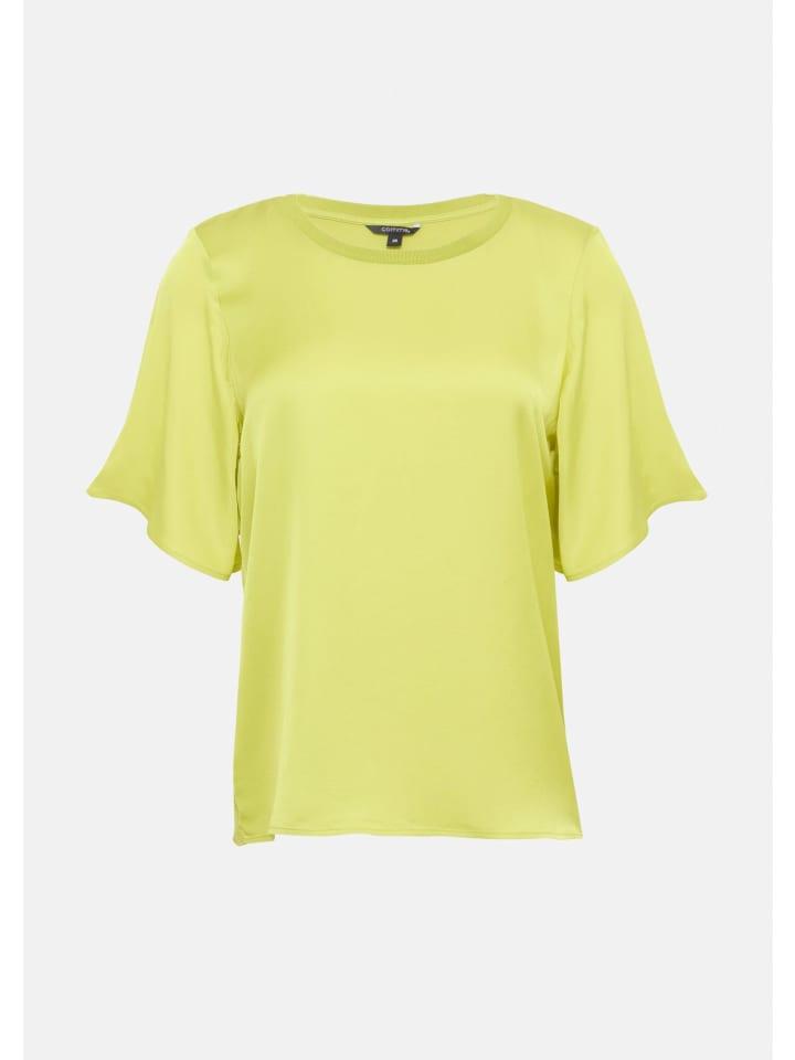 Струящаяся элегантность на любой случай: эта рубашка-блузка из смеси атласа и трикотажа создает универсальную вещь. Круглый вырез горловины с ребристой отделкой и оборки на рукавах придают свободному крою женственность. Эта рубашка идеально подходит для повседневных и деловых образов, она легко стилизуется. Сочетание вискозы и тонкой ткани обеспечивает комфортную носку и выгодно подчеркивает фигуру.