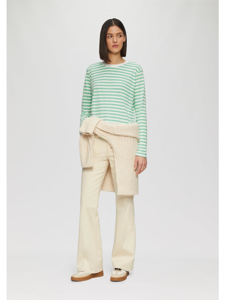 Расслабьтесь в этой повседневной рубашке с длинными рукавами из мягкого хлопкового трикотажа. Классические полоски и удобный свободный крой сделают ее идеальным спутником для уютных моментов.