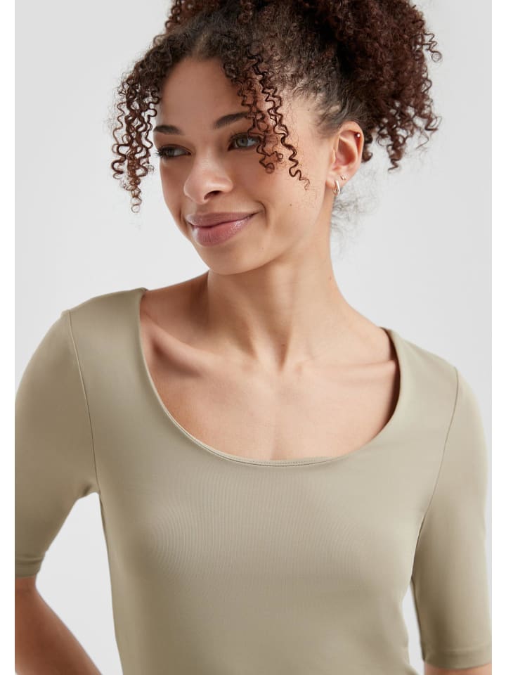 Облегающая рубашка из джерси с квадратным вырезом для повседневного образа. Мягкая полиамидная ткань приятна к телу и при этом эластична. Идеально подходит для повседневной носки или выхода в свет, всегда стильно.