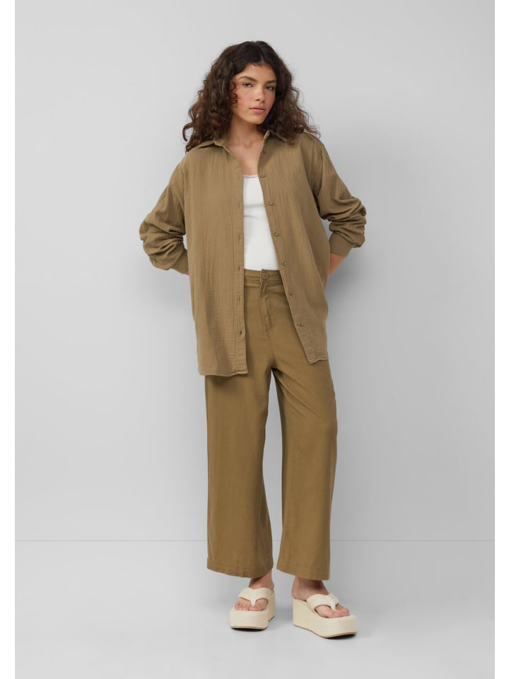 Воздушные и легкие брюки-кюлоты из льняной ткани: ваш идеальный спутник для расслабленных дней! Эти дышащие брюки широкого кроя с эластичным поясом идеально подойдут для вашего образа жизни. Практичные карманы.
