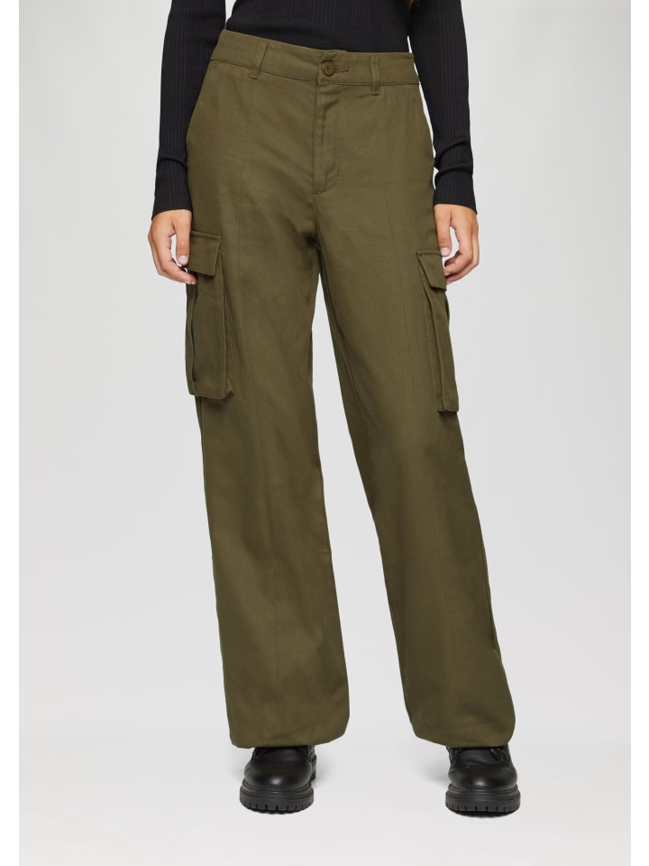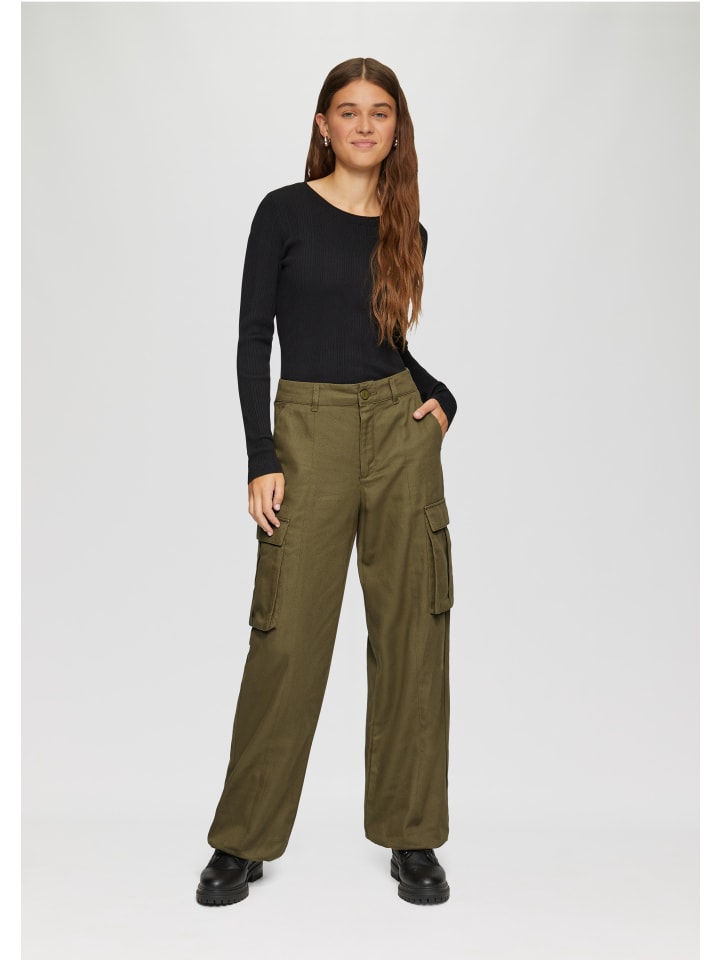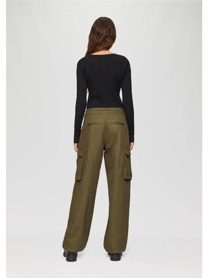 Брюки 7864_оливково-зеленого цвета QS