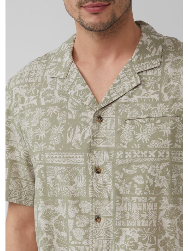 Эта повседневная рубашка с короткими рукавами в курортном стиле впечатляет своим летним рисунком по всей поверхности. Воздушный поплин и закругленный подол делают ее идеальным дополнением для расслабленных пляжных дней и городских повседневных образов.