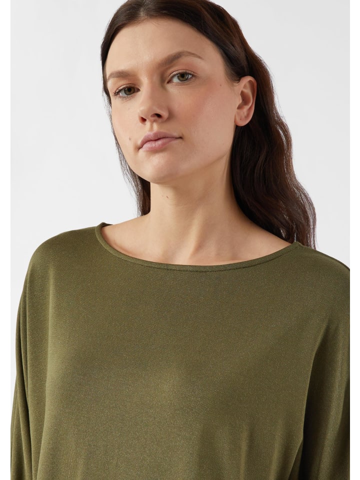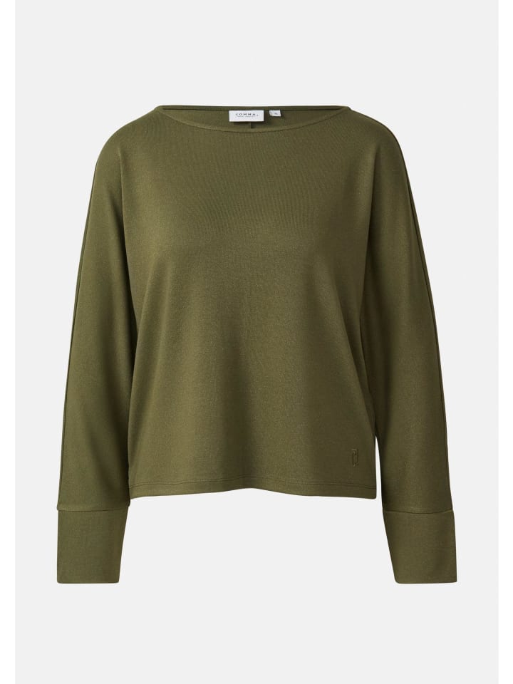 Гламурная, но непринужденная: эта трикотажная рубашка с привлекательным вырезом «лодочка» сочетает в себе комфорт и праздничный блеск. Свободный силуэт и плавно струящиеся рукава «летучая мышь» с изысканной кулиской создают женственный образ. Благодаря элегантной блестящей пряже рубашка легко превращается из повседневной вещи в стильный аксессуар для праздников.