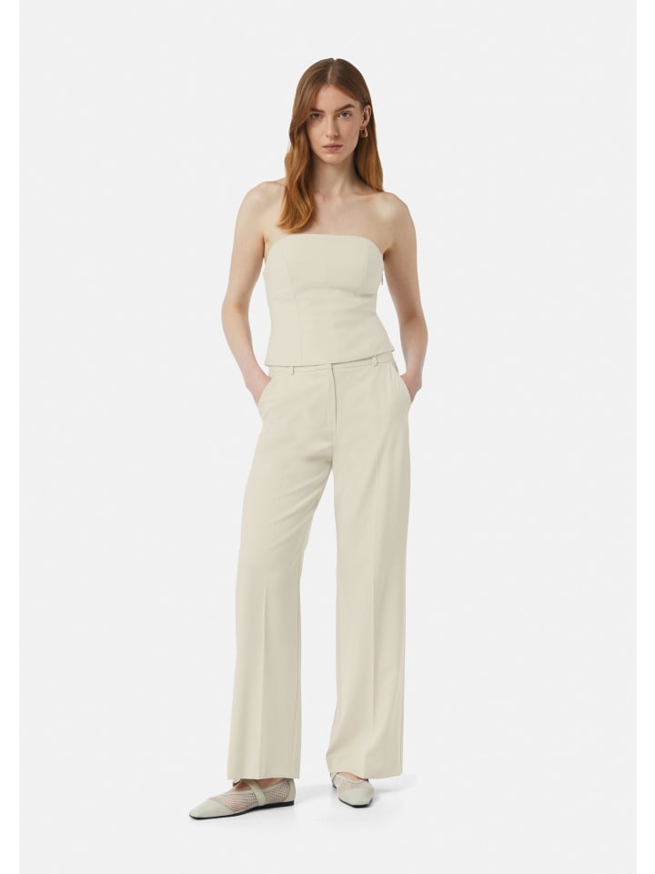 Элегантные брюки широкого кроя для идеального делового образа. Они впечатляют высококачественными материалами и утягивающим поясом, который выгодно подчеркивает фигуру. Средняя посадка и боковые карманы сочетают в себе комфорт и функциональность. Благодаря элегантному дизайну и струящейся ткани эти брюки можно комбинировать по-разному - от классического офисного образа до модного вечернего ансамбля.