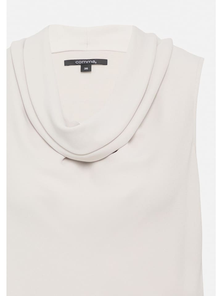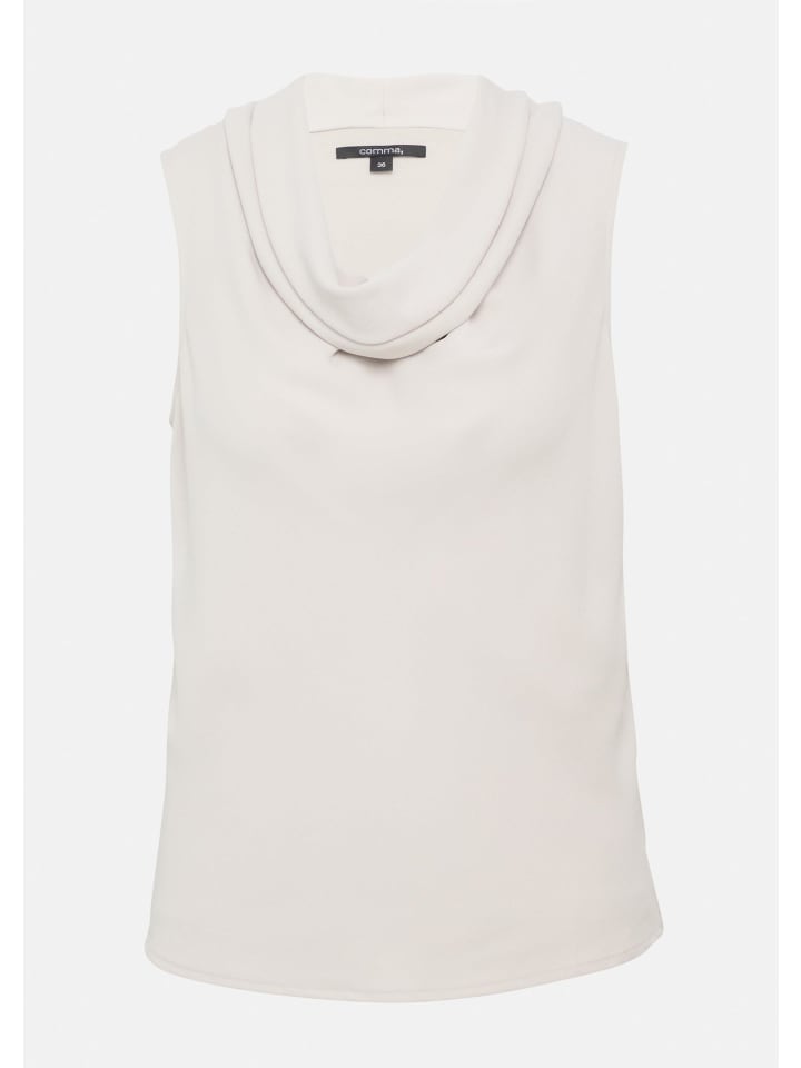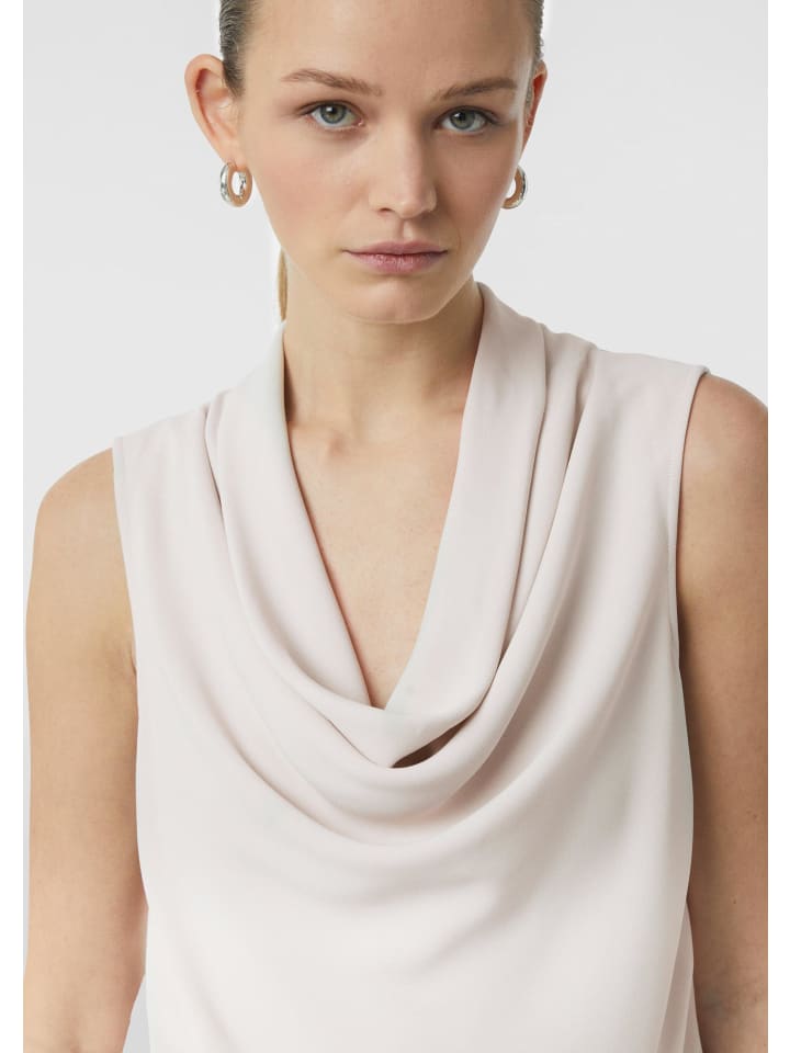 Этот топ без рукавов - настоящая находка. Струящийся водопадный вырез выгодно подчеркивает фигуру и добавляет образу женственности. Инновационное сочетание материалов создает захватывающий контраст, делая топ универсальным аксессуаром. Сочетайте его с блейзером для делового образа или с джинсами для создания непринужденного образа.