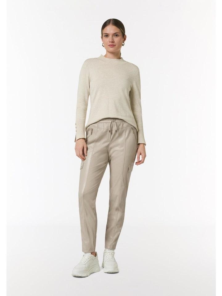 Повседневная элегантность и изысканный шик: эти брюки длиной 7/8 из кожи сочетают в себе комфорт и стиль. Свободный крой с зауженными брючинами подчеркивает фигуру, а средняя посадка на талии гарантирует современный силуэт. Практичные карманы-карго и карманы на молнии позволяют хранить необходимые вещи. Идеально подходит для создания повседневно-элегантного образа, который можно дополнить кроссовками или обувью на каблуках.