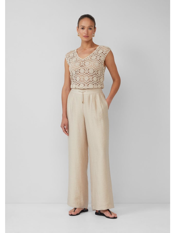 Повседневная элегантность и комфорт: эти очень широкие брюки из льняной смеси станут вашим универсальным спутником на все случаи жизни. Высокая талия с кулиской подчеркивает фигуру, а воздушная ткань обеспечивает комфорт. Идеально подходят для деловых встреч или отдыха - вы сами определяете свой образ.