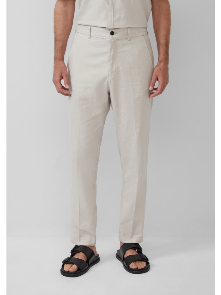 Откройте для себя идеальные брюки-чинос для создания уверенного образа. Изготовленные из высококачественной льняной смеси, они сочетают в себе комфорт и стиль, обеспечивая свободный крой. Эластичный пояс со шлевками для ремня и классическая застежка на пуговицу и молнию обеспечивают максимальный комфорт. Универсальные и удобные - подойдут как для офиса, так и для ужина.