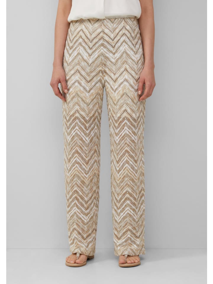 Уверенность и стиль: эти брюки широкого кроя из высококачественного трикотажного джерси сочетают в себе комфорт и элегантность. Благодаря высокому поясу на резинке и подкладке они идеально подходят для создания уверенного образа - от деловых встреч до вечеринок. Узор по всей поверхности подчеркнет вашу индивидуальность и сделает эти брюки универсальным элементом гардероба.