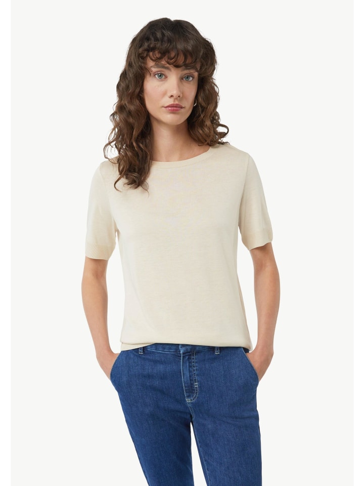 Эта футболка из трикотажного джерси сочетает в себе комфорт и стиль. Смесь лиоцелла и хлопка обеспечивает приятный на ощупь и плавный силуэт. Благодаря прямому крою и круглому вырезу она идеально садится по фигуре. Ребристые детали придают этой футболке с короткими рукавами изысканный вид. Она достаточно универсальна, чтобы сочетаться с любыми образами: от повседневного до элегантного.