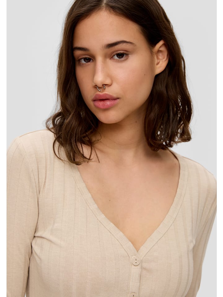 Готовы вывести свой стиль на новый уровень? Наша укороченная футболка, разработанная специально для молодых женщин, - ваш незаменимый предмет гардероба для повседневного шика. Эластичная ткань обеспечивает облегающую посадку, а длинные рукава и V-образный вырез добавляют нотку элегантности. Благодаря планке на пуговицах и укороченной длине эта футболка сочетает в себе изысканность и современный стиль. Сочетайте ее с джинсами с высокой талией для повседневного выхода или надевайте с плиссированной юбкой для более нарядного образа. Демонстрируйте свою уверенность в стиле в любое время года с этой универсальной вещью. Готовы стильно покорять повседневную жизнь?