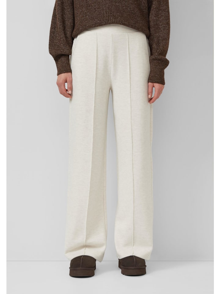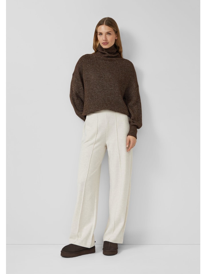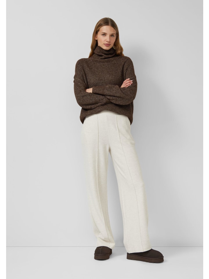 Эти мягкие и приятные к телу брюки в непринужденном стиле сочетают в себе свободный широкий крой с элегантными складками. Легкий трикотаж с меланжевым трикотажем и практичные боковые карманы делают их идеальным компаньоном для расслабленных дней.