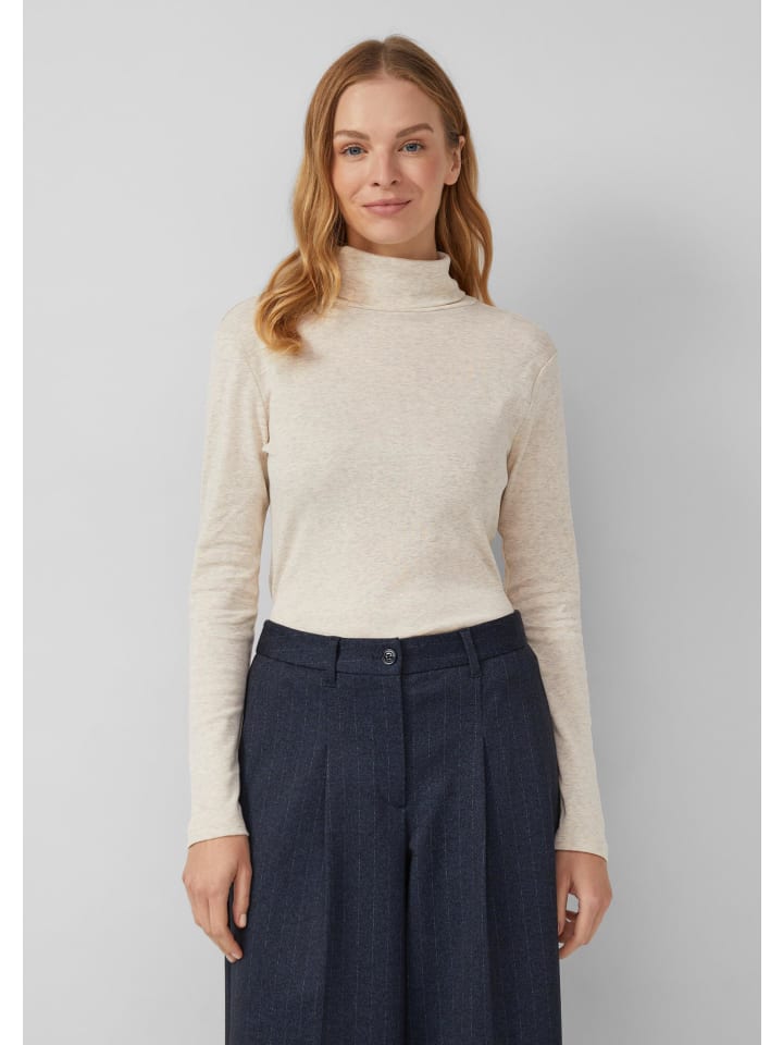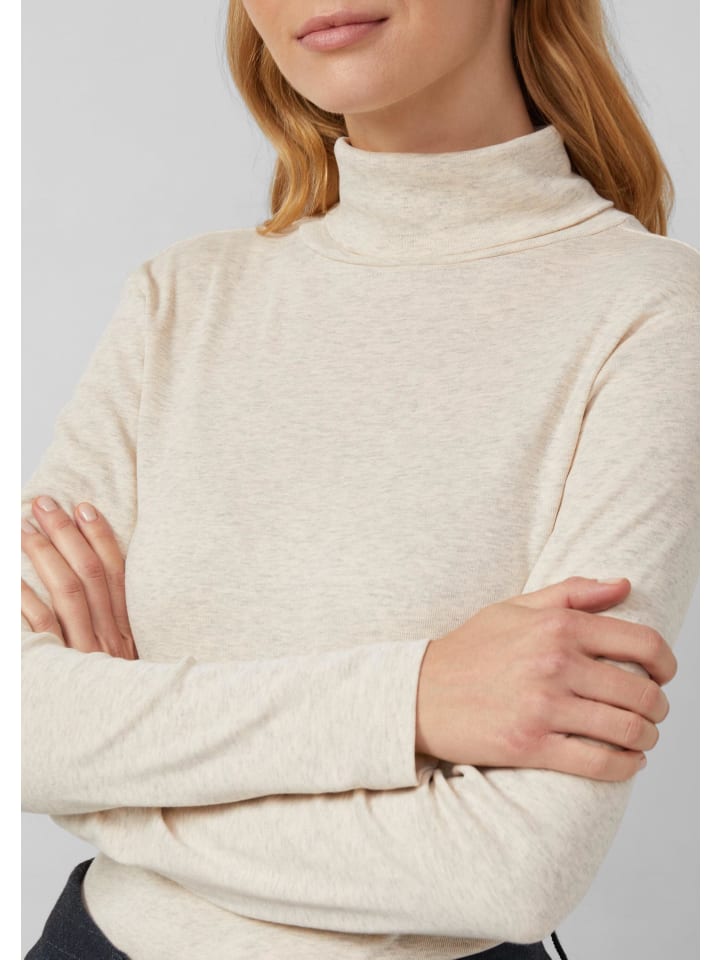 Ваша новая любимая вещь для расслабленного отдыха: этот мягкий трикотажный топ с длинными рукавами облегающего кроя и высоким воротником. Эластичная хлопковая ткань классического однотонного кроя приятна к телу и обеспечит вам стильный образ на весь день.
