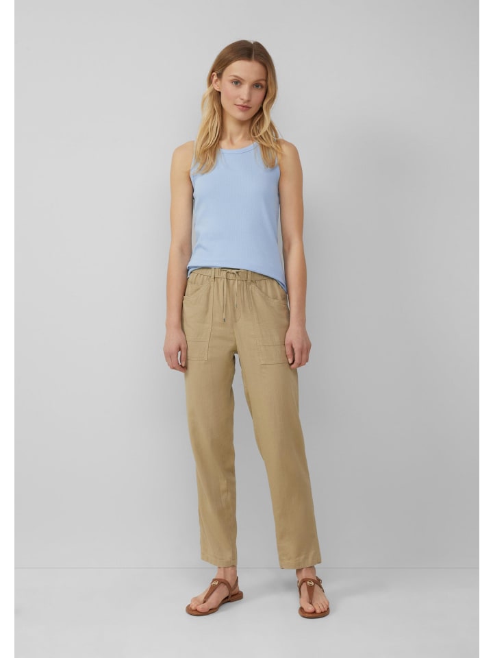 Легкие брюки из смесовой льняной ткани для повседневной носки летом! Эти зауженные книзу брюки станут вашим комфортным спутником в расслабленные дни. Будь то пикник в парке или кофе на балконе - вы всегда будете чувствовать себя стильно и комфортно.