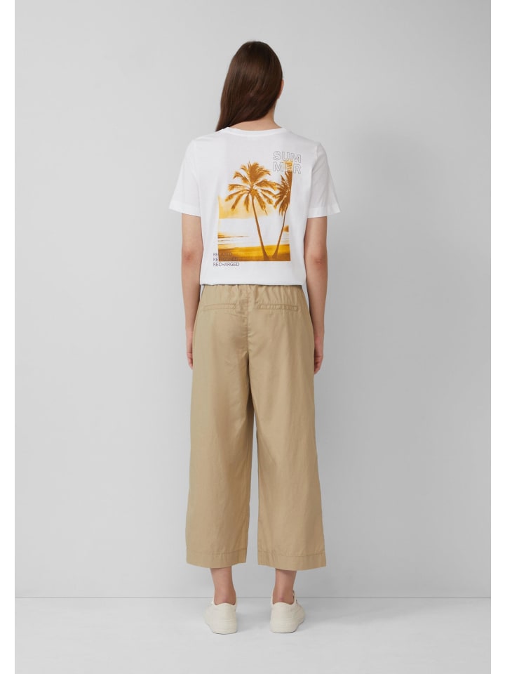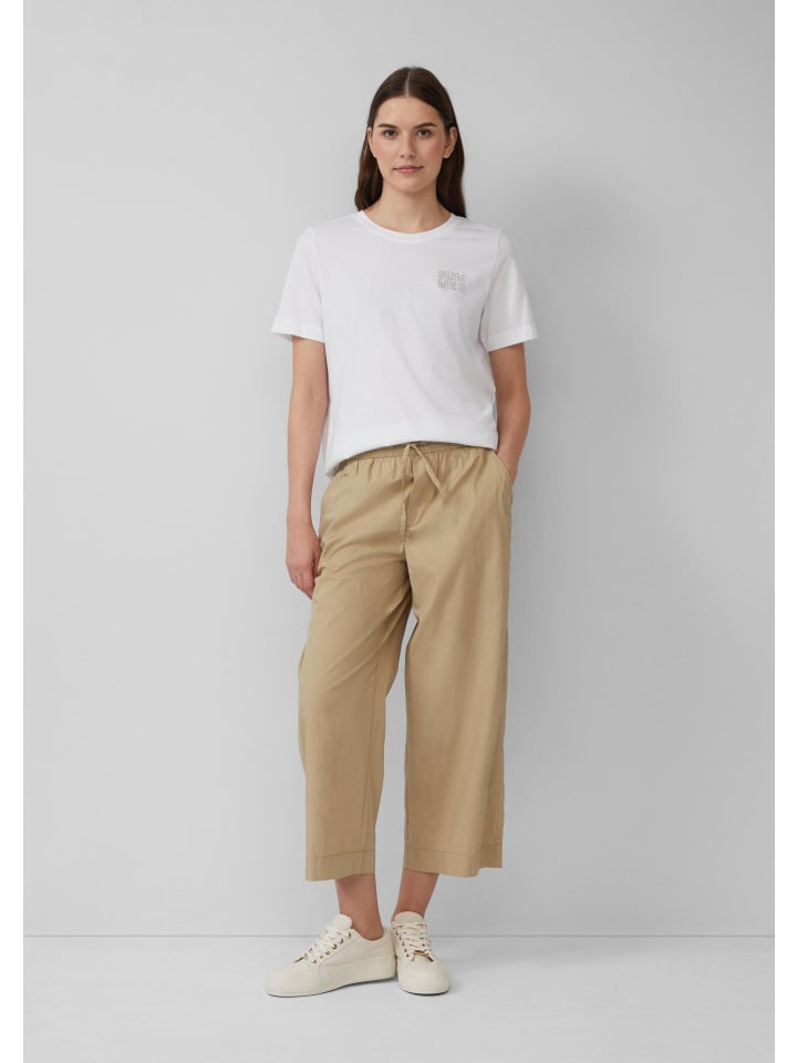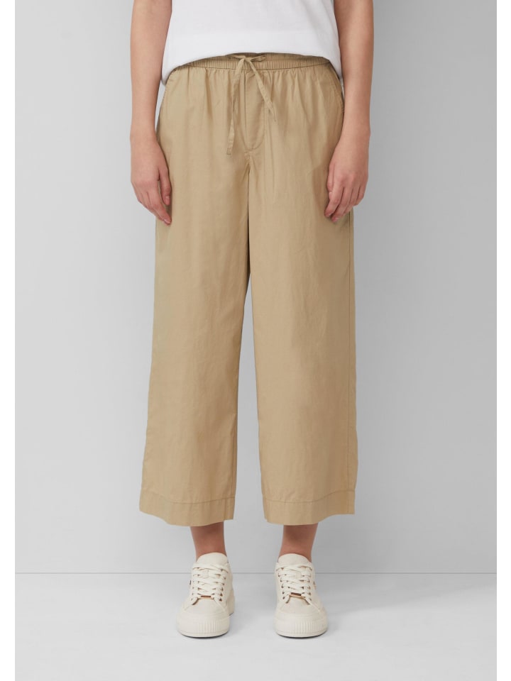 Эти воздушные и легкие брюки-кюлоты из хлопковой смеси обеспечивают максимальный комфорт. Высокая талия на резинке со шнурком и свободный широкий крой делают их идеальным компаньоном для неторопливых летних дней.