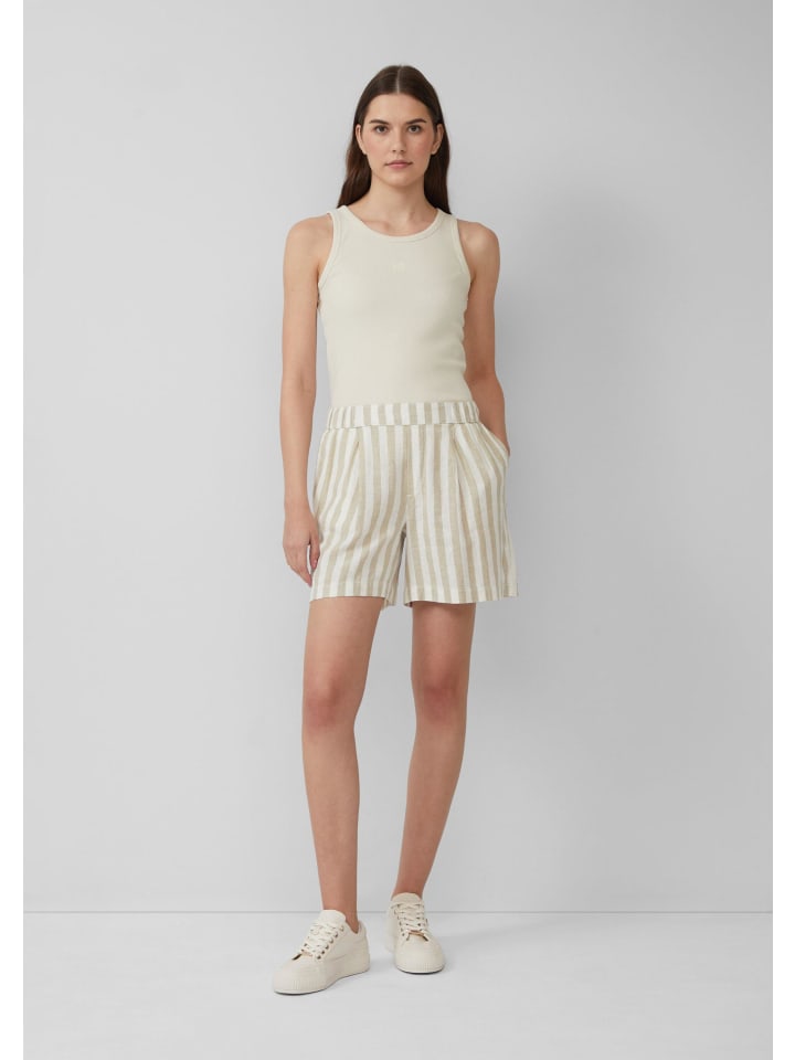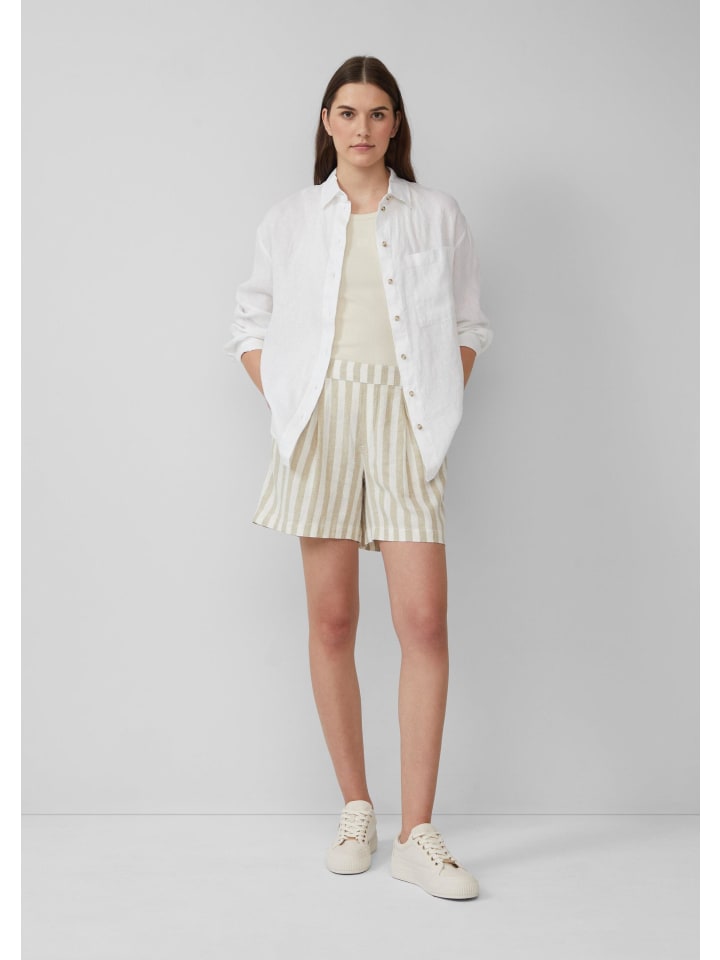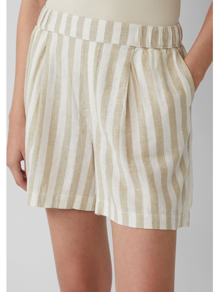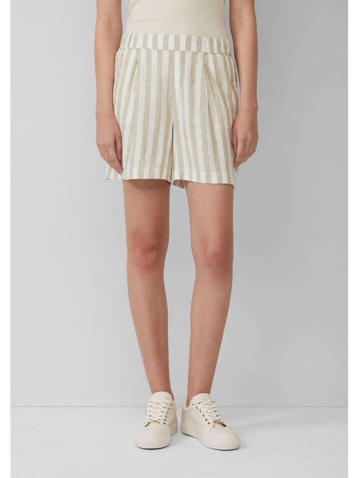 Эти воздушные шорты с высокой талией из смесовой льняной ткани сочетают в себе комфорт и стиль. Свободный широкий крой, практичные боковые карманы и эластичный пояс со складками делают их идеальным компаньоном для солнечных дней.