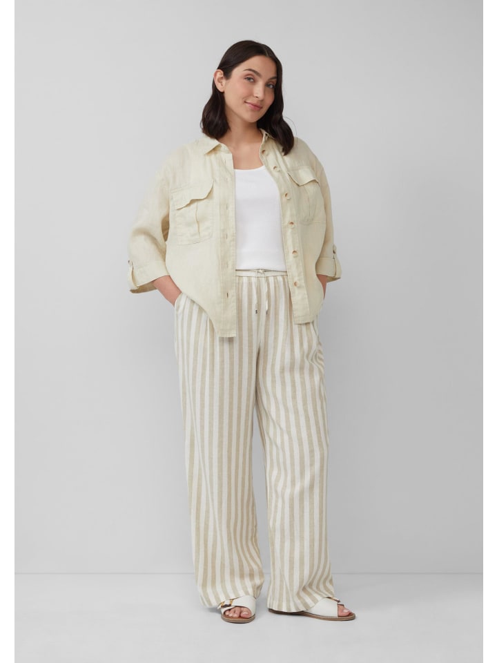 Свободный крой в течение всего дня: эти воздушные брюки из смесовой льняной ткани свободного кроя подчеркивают вашу фигуру благодаря удобному поясу средней высоты и практичным боковым карманам. Эластичный пояс с кулиской обеспечивает максимальный комфорт при каждом шаге.
