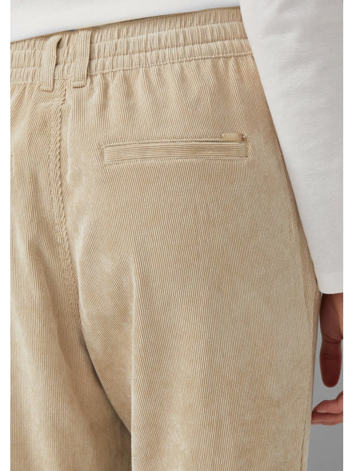 Эти вельветовые брюки длиной до щиколотки впечатляют своим свободным зауженным кроем и практичным эластичным поясом. Средняя посадка и складки обеспечивают удобную посадку. Благодаря кулиске и боковым карманам они станут вашим стильным повседневным спутником.