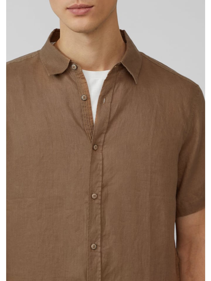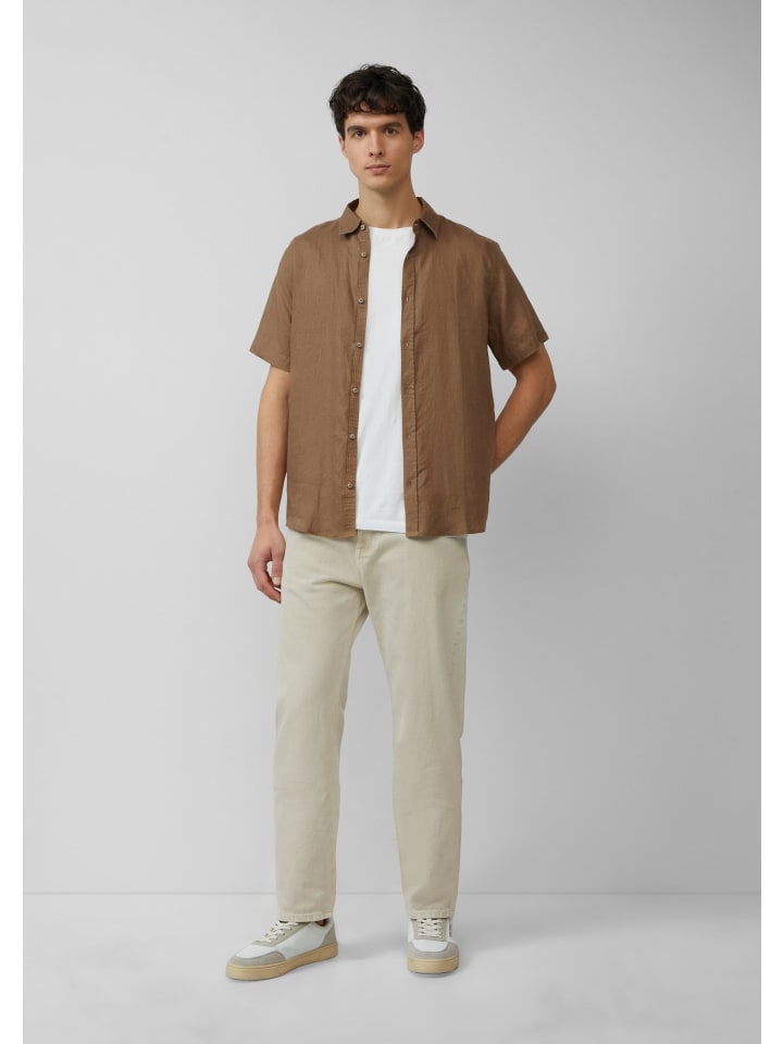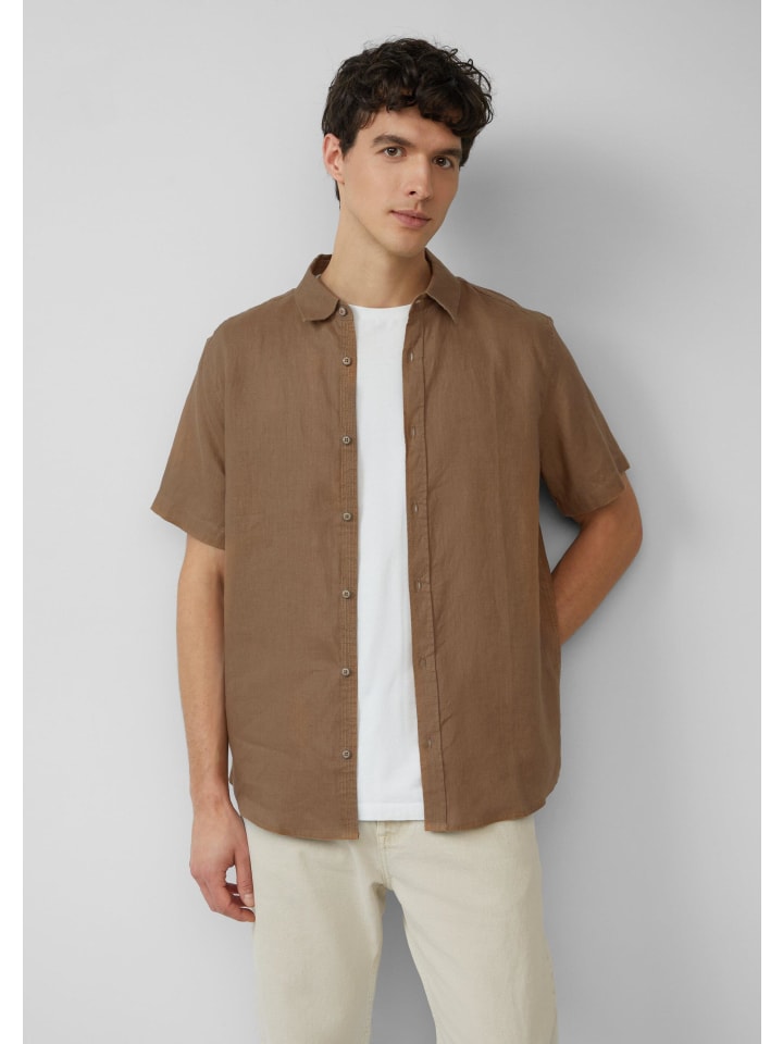 Легкая льняная рубашка для расслабленных летних дней. Классический воротник на пуговицах и практичный нагрудный карман делают эту повседневную рубашку идеальным спутником для пляжа, отпуска и отдыха. Удобный классический крой.