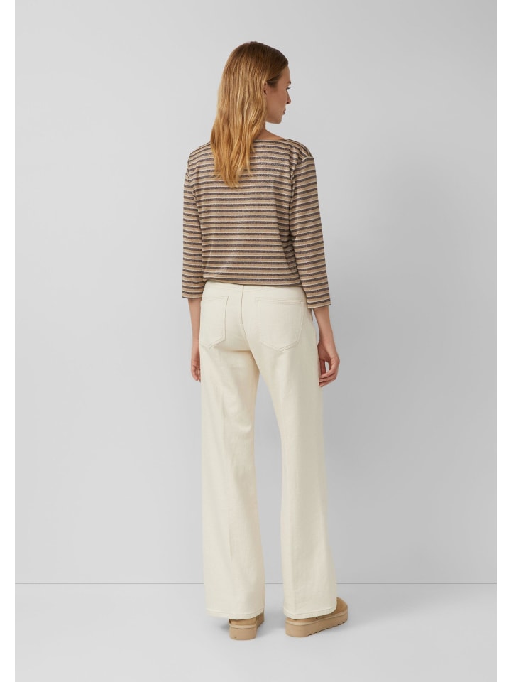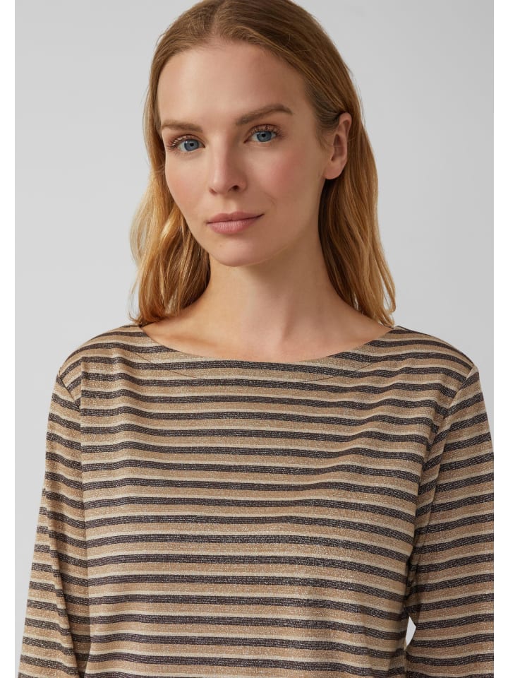 Эта полосатая рубашка из джерси с вырезом-лодочкой добавит блеска вашему повседневному образу. Изящная блестящая пряжа и боковые разрезы делают ее незаменимой повседневной вещью.
