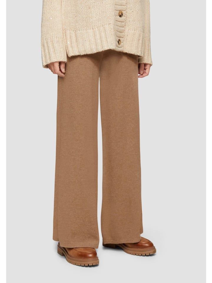 Эти роскошные трикотажные брюки из смесовой кашемировой пряжи порадуют вас невероятной мягкостью. Эластичный пояс с кулиской, ребристые боковые детали и свободный полуширокий крой делают их идеальным дополнением как для деловых встреч, так и для отдыха.