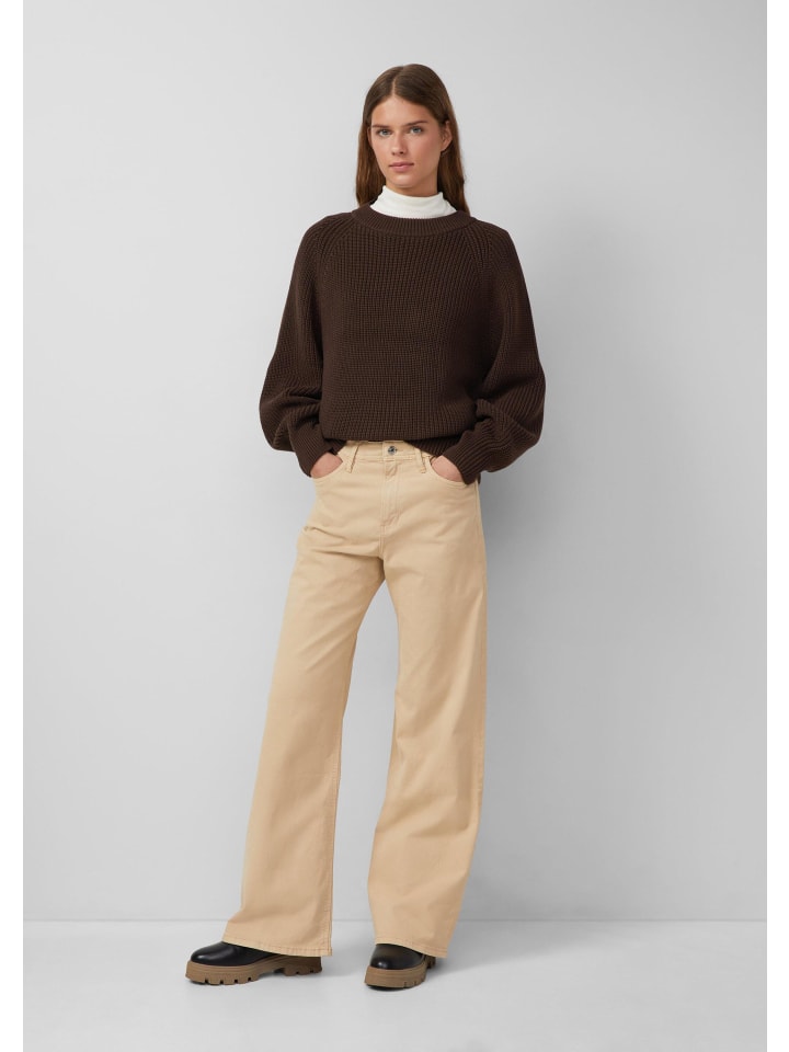 Джинсы цвета сури впечатляют широкими штанинами и высокой талией. Эластичная джинсовая ткань обеспечивает повседневный комфорт. Благодаря петлям для ремня и молнии, они сочетают в себе непринужденный, повседневный стиль и женственность.
