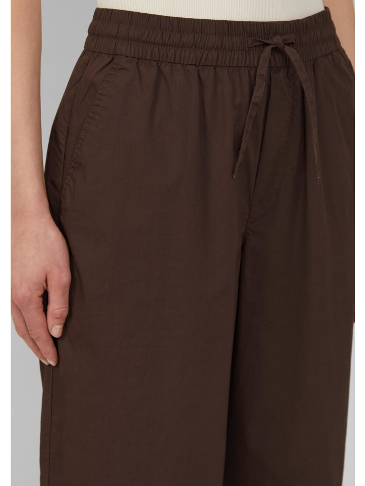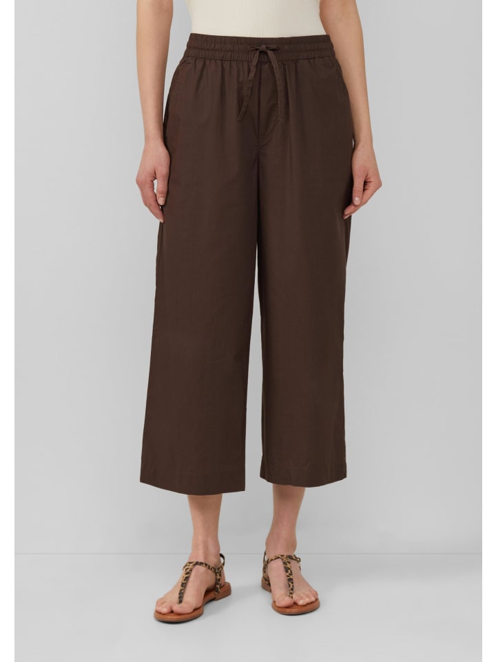 Эти воздушные и легкие брюки-кюлоты из хлопковой смеси обеспечивают максимальный комфорт. Высокая талия на резинке со шнурком и свободный широкий крой делают их идеальным компаньоном для неторопливых летних дней.