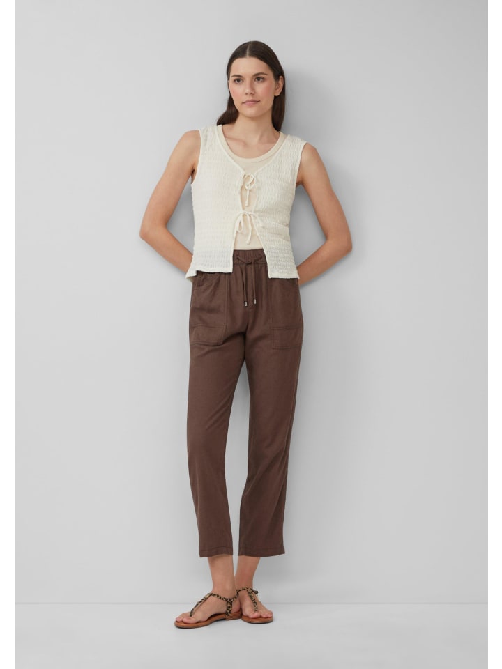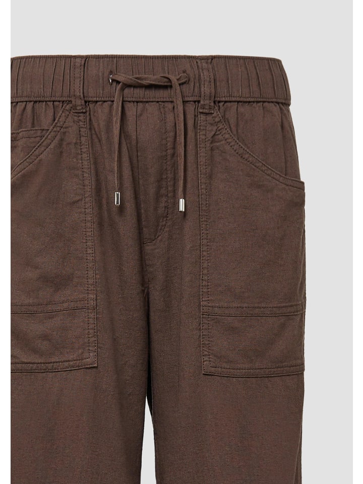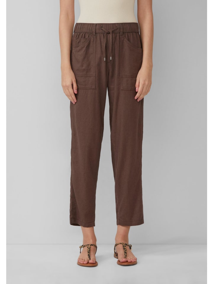 Свободные брюки из смесовой льняной ткани с непринужденным зауженным кроем и практичным поясом на резинке. Накладные карманы и завязывающийся пояс делают их идеальным дополнением для расслабленных летних дней. Длина до щиколотки, удобная средняя посадка.