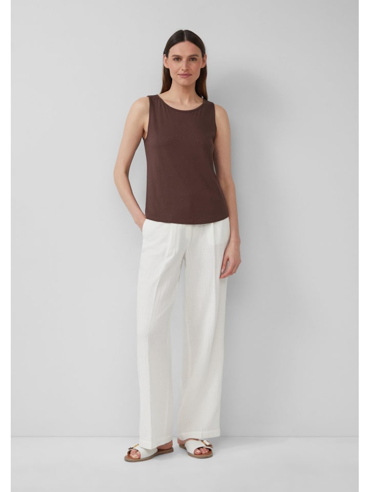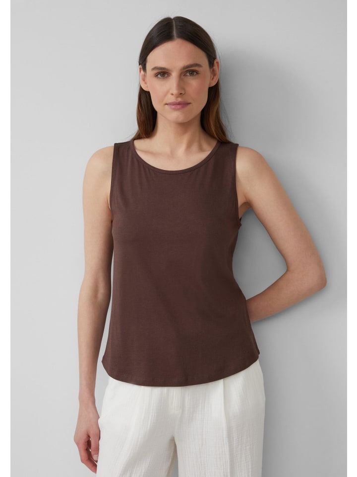 Расслабьтесь в течение дня: этот трикотажный топ без рукавов с декоративным вырезом и узором по всей поверхности впечатляет своим свободным классическим кроем. Закругленный низ и слегка эластичная хлопковая ткань обеспечивают оптимальный комфорт.