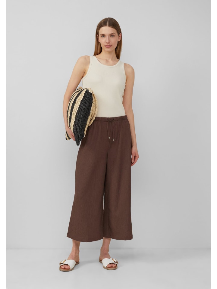 Эти удобные трикотажные брюки-кюлоты свободного кроя с текстурированным принтом по всей поверхности и эластичным поясом. Широкий крой и свободная длина делают их идеальным дополнением к непринужденным повседневным образам.