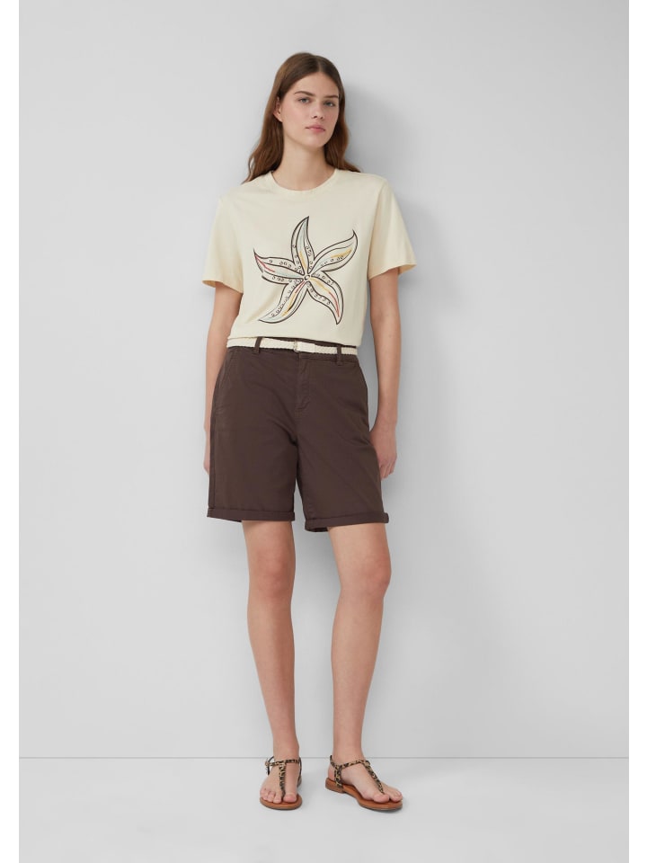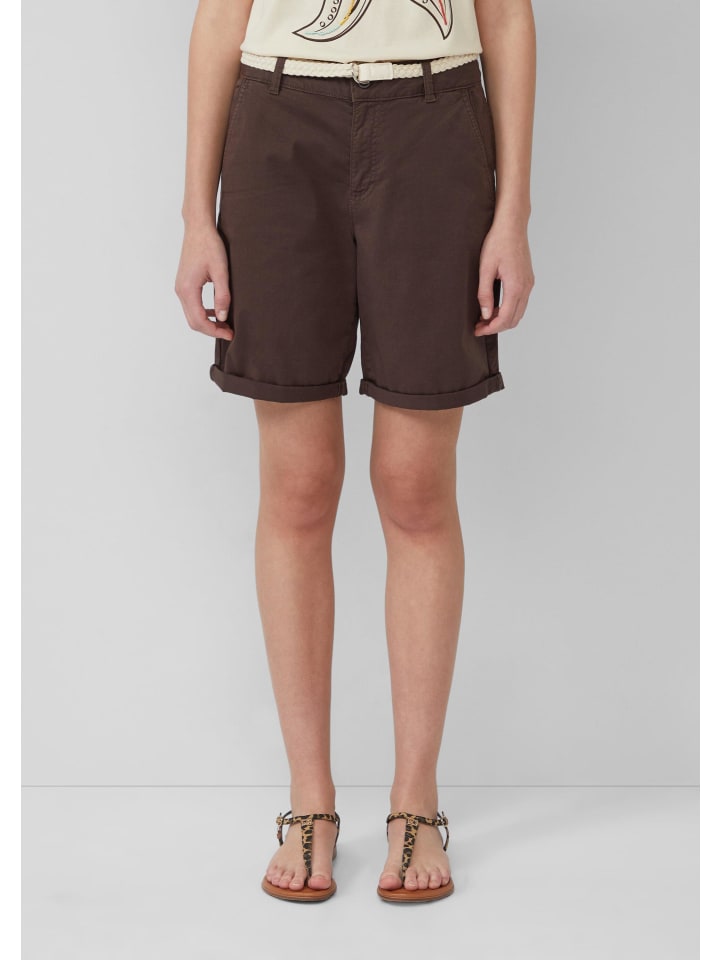 Эти повседневные шорты-бермуды из эластичного хлопка выглядят стильно, словно окрашенные в готовом виде. Плетеный пояс, практичные боковые карманы и классический крой делают их идеальным спутником для летних прогулок.
