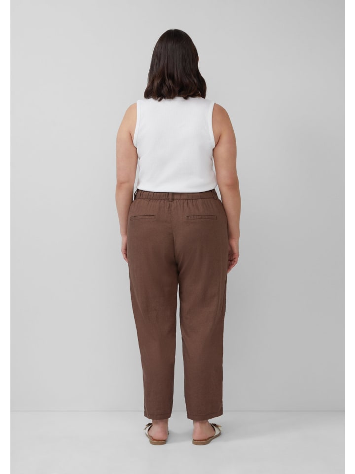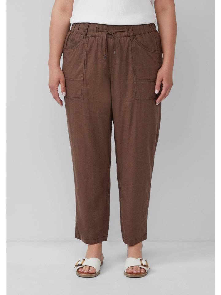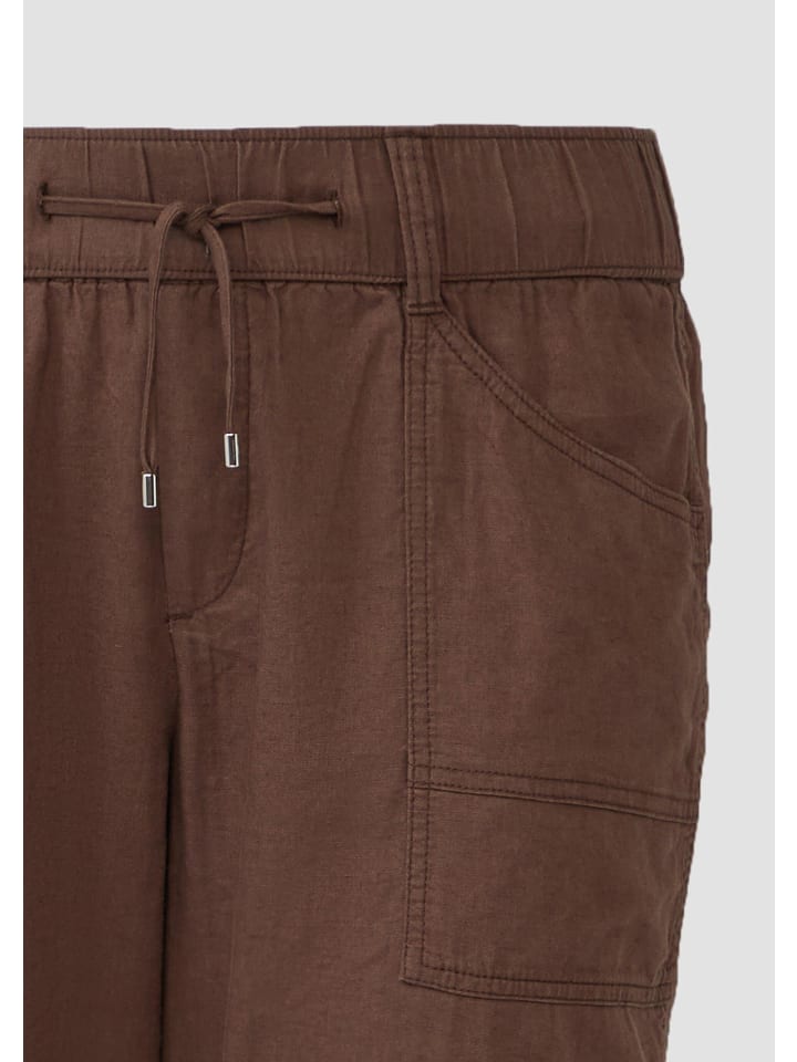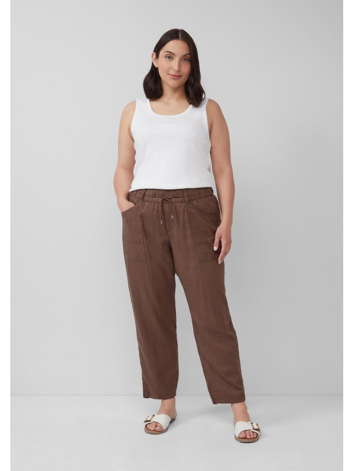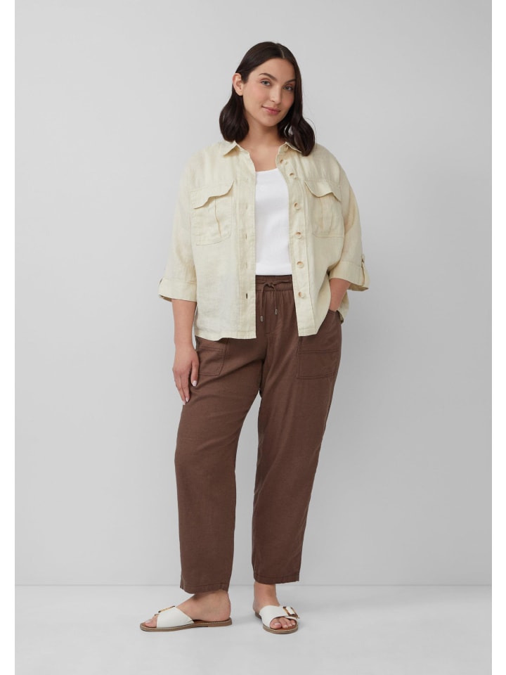 Эти воздушные брюки из смесовой льняной ткани свободного кроя идеально подойдут для непринужденных летних дней. Удобный эластичный пояс со шнурком и накладные карманы сделают их идеальным компаньоном для отдыха. Длина до щиколотки стильно подчеркивает лодыжки.