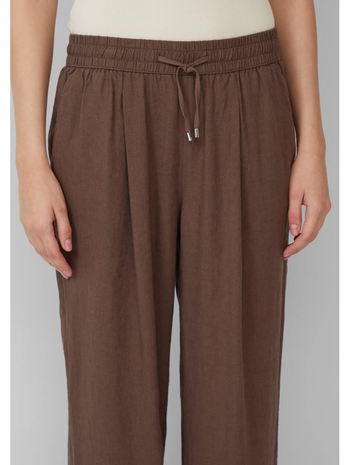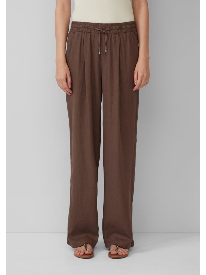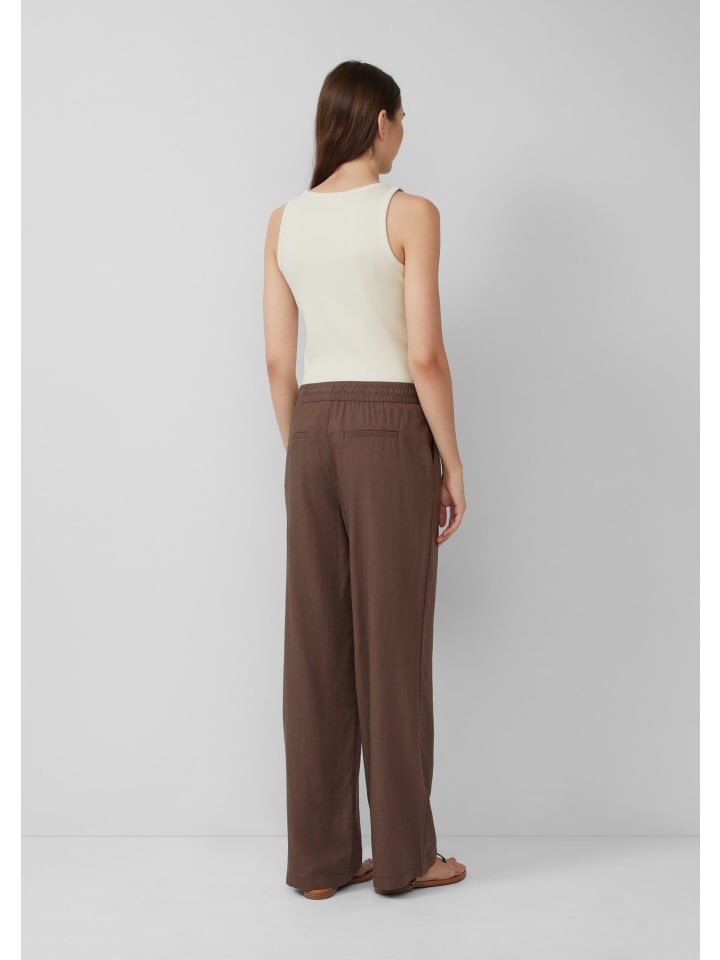 Эти воздушные брюки свободного кроя из смесовой льняной ткани обеспечат вам комфорт в теплые дни. Высокий пояс на резинке, практичные боковые карманы и широкие штанины сочетают в себе комфорт и непринужденный стиль - идеально для прогулок по пляжу.