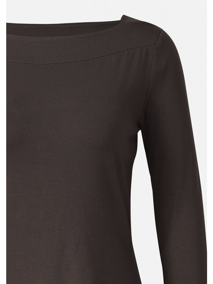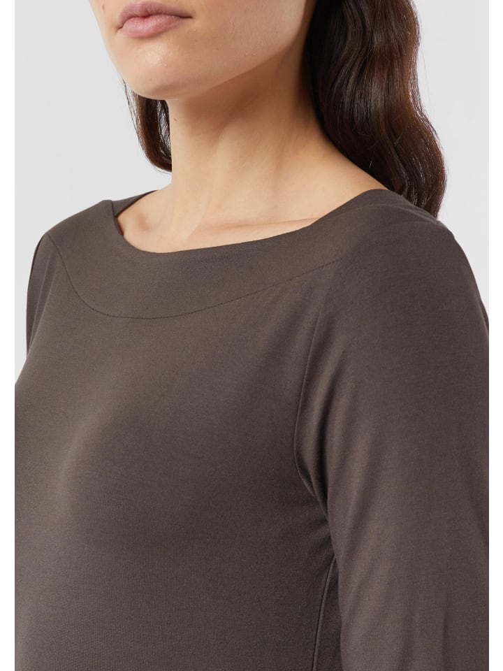 Эта элегантная рубашка из вискозы впечатляет своим женственным приталенным кроем, который искусно подчеркивает ваш силуэт. Классический вырез «лодочка» эффектно подчеркивает плечи и зону декольте, а практичные рукава три четверти предлагают разнообразные варианты для создания образа. Гладкая трикотажная ткань приятна к телу и гарантирует максимальный комфорт в повседневной носке. Футболку можно носить как с джинсами, так и с юбкой - идеальный вариант для создания непринужденного повседневного образа, который легко перенесет вас из офиса в ресторан.