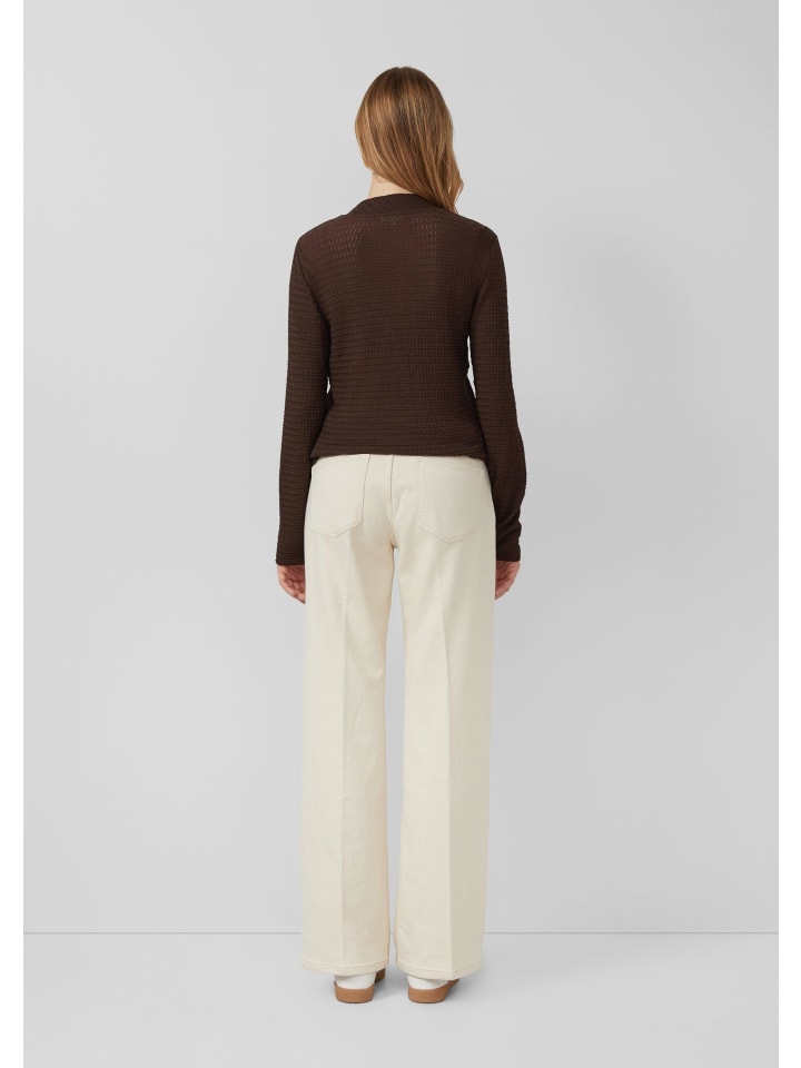 Кружевной трикотаж воплощает элегантность! Этот облегающий топ с длинными рукавами и высоким воротником-стойкой невероятно мягкий и приятный к телу. Слегка эластичный и без подкладки, он стильно дополнит ваш образ на весь день - от офиса до ужина.