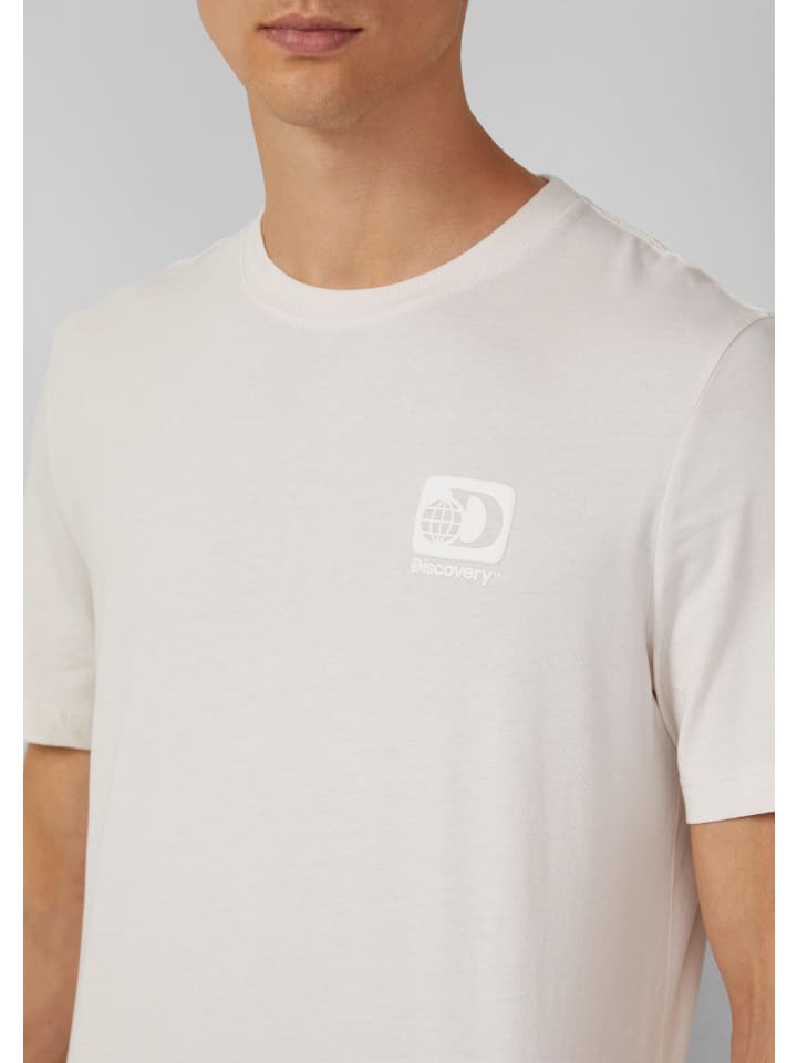 Повседневная футболка из джерси для непринужденного отдыха: эта удобная хлопковая футболка с модным принтом Discovery спереди впечатляет классическим круглым вырезом и прямым нижним краем. Классический крой гарантирует максимальный комфорт.