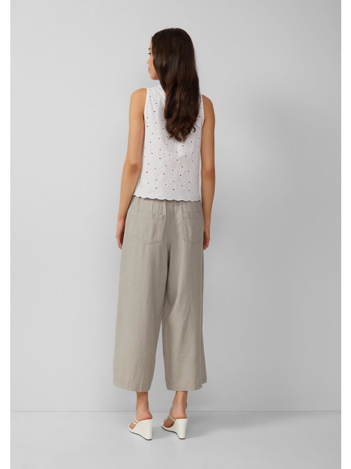 Воздушные и легкие брюки-кюлоты из льняной ткани: ваш идеальный спутник для расслабленных дней! Эти дышащие брюки широкого кроя с эластичным поясом идеально подойдут для вашего образа жизни. Практичные карманы.