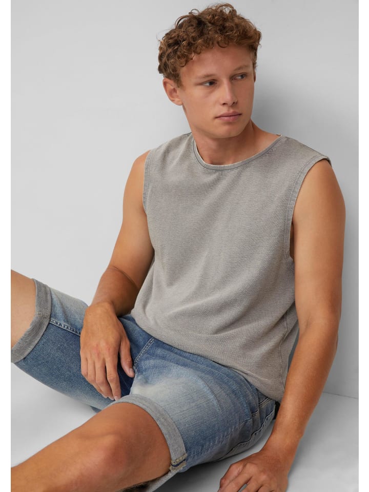 Ваш новый летний фаворит: стильная майка из фактурного трикотажа. Идеально подходит для расслабленных дней и прохладных вечеров. Классический крой и хлопок обеспечивают максимальный комфорт. Небрежная стирка создаст идеальный поношенный вид. Наденьте и вперед!