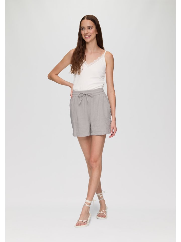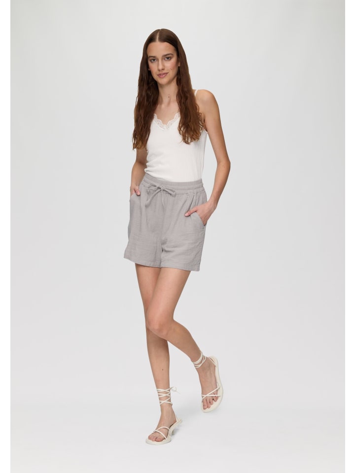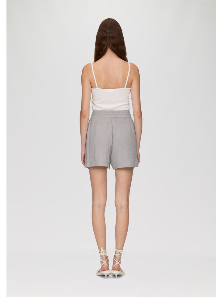 Повседневные муслиновые шорты с высокой талией для вашего летнего образа! Мягкие, легкие и не мнутся - в них вам будет комфортно в жаркие дни. Благодаря удобному эластичному поясу и шнурку эти хлопковые шорты обеспечивают идеальную посадку. Прямые брючины и боковые карманы дополняют стильный образ.