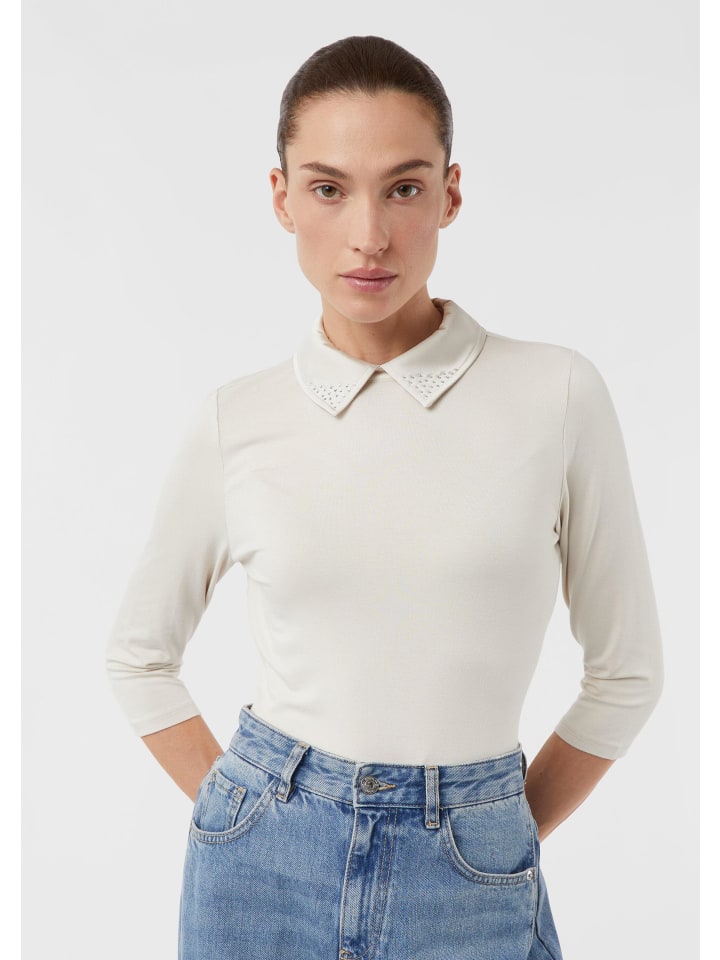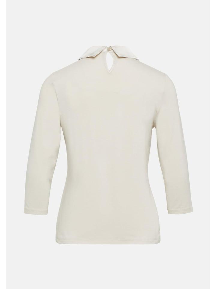 Элегантная изысканность и повседневный комфорт: эта облегающая трикотажная рубашка со съемным атласным воротником сочетает в себе высококачественные материалы, создавая универсальный стильный предмет. Женственный рубашечный воротник с декоративными стразами и рукава 3/4 добавляют модные акценты. Благодаря высококачественной вискозной смеси и облегающему крою рубашка выгодно подчеркивает любую фигуру. Практичный разрез с пуговицей придает этой базовой модели особый шарм.