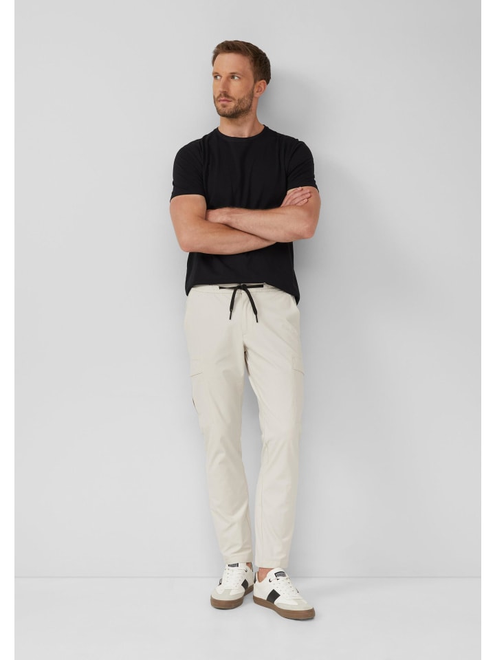 Спортивная элегантность и деловой шик: эти брюки-джоггеры из эластичного трикотажа сочетают в себе комфорт и стиль. Классический крой с прямыми штанинами подчеркивает фигуру, а карманы-карго добавляют практичности. Благодаря средней талии и эластичному поясу они идеально подходят для создания уверенного образа - от встреч до вечеринок после работы.