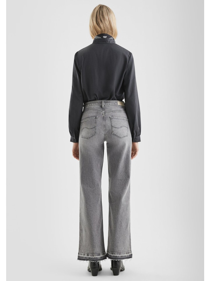Эти джинсы с высокой талией и широкими штанинами - ваш новый фаворит для расслабленных дней. Благодаря непринужденному потертому крою, комфортному эластичному дениму и стильному дизайну с пятью карманами, они идеально дополнят ваш повседневный образ. Необработанный край добавит изюминку.