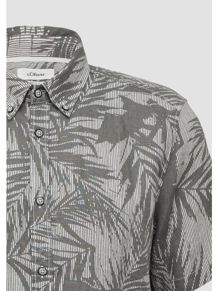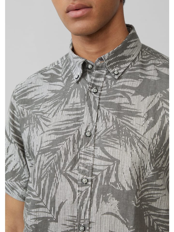 Непринужденный стиль на все лето: эта воздушная льняная рубашка с принтом по всей поверхности и воротником на пуговицах имеет удобный классический крой. Закругленный низ и практичная планка на пуговицах делают ее идеальным спутником для отпуска и отдыха.