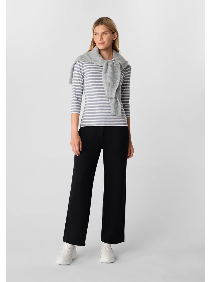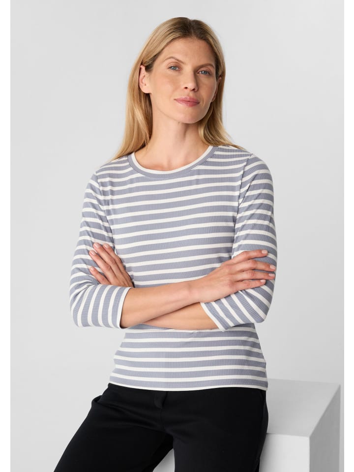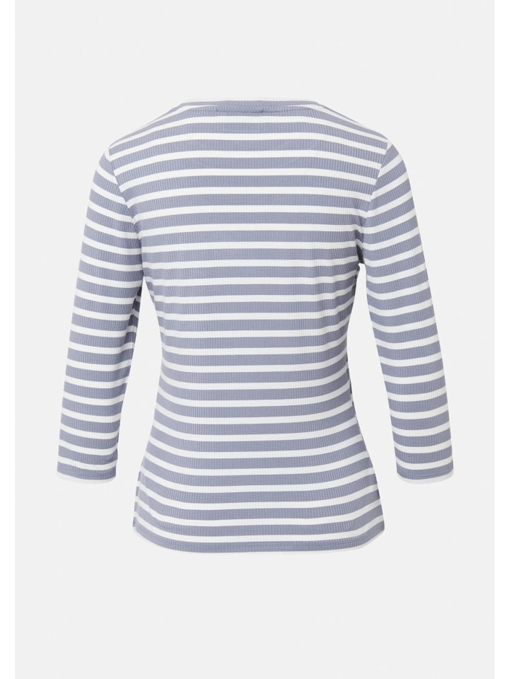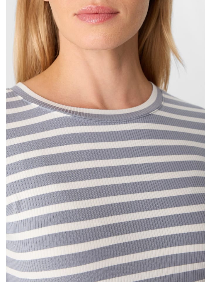 Эта рубашка в рубчик облегающего кроя с рукавами 3/4 станет вашим универсальным спутником как в повседневном, так и в деловом стиле. Классический круглый вырез горловины и средняя длина создают женственный силуэт. Полосатый рисунок добавляет модный штрих, а закругленный край обеспечивает четкий контур. Сочетайте ее с блейзером для создания спортивно-шикарного офисного образа или носите с джинсами для непринужденного отдыха.